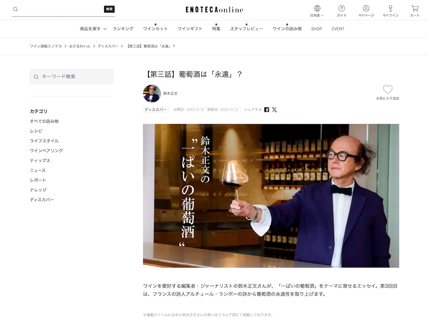 鈴木正文『一ぱいの葡萄酒』 ENOTECA online